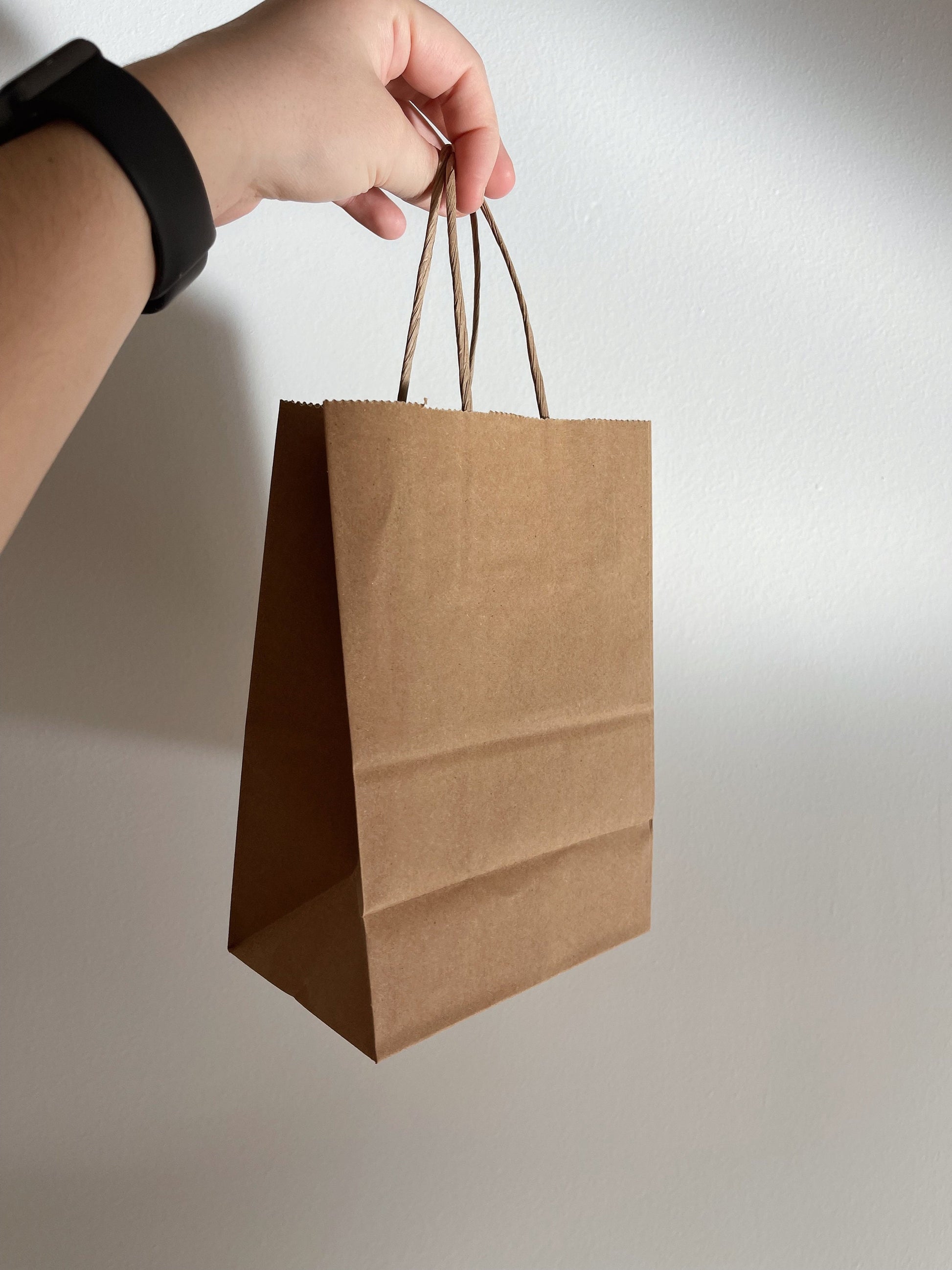 4 brown gift bags painted with flowers.